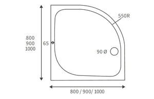 45mm Low Profile 1000mm Quadrant Tray & Waste