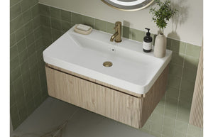 BELLEISLE 500mm Wall Hung 1 Drawer Basin Unit & Basin - Textured Oak