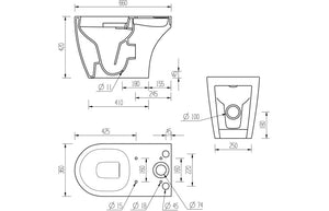 ORKNEY Rimless Close Coupled Open Back WC & Soft Close Seat