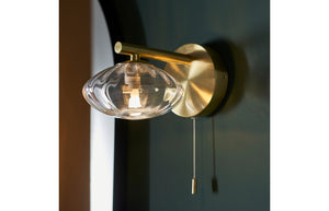- Satin brass effect metalwork with clear ribbed glass diffuser