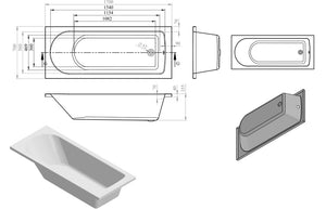 STUDIO D Shape Single End SUPERCAST 1700x700x550mm 2TH Bath with Legs