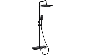 Vema Thermostatic Shower Column w/Fixed Head & Riser & Shelf & Foot Wash - Black