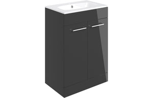 WILSON 610mm Floor Standing 2 Door Basin Unit & Basin - Anthracite Gloss
