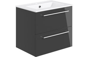 WILSON 610mm Wall Hung 2 Drawer Basin Unit & Basin - Anthracite Gloss